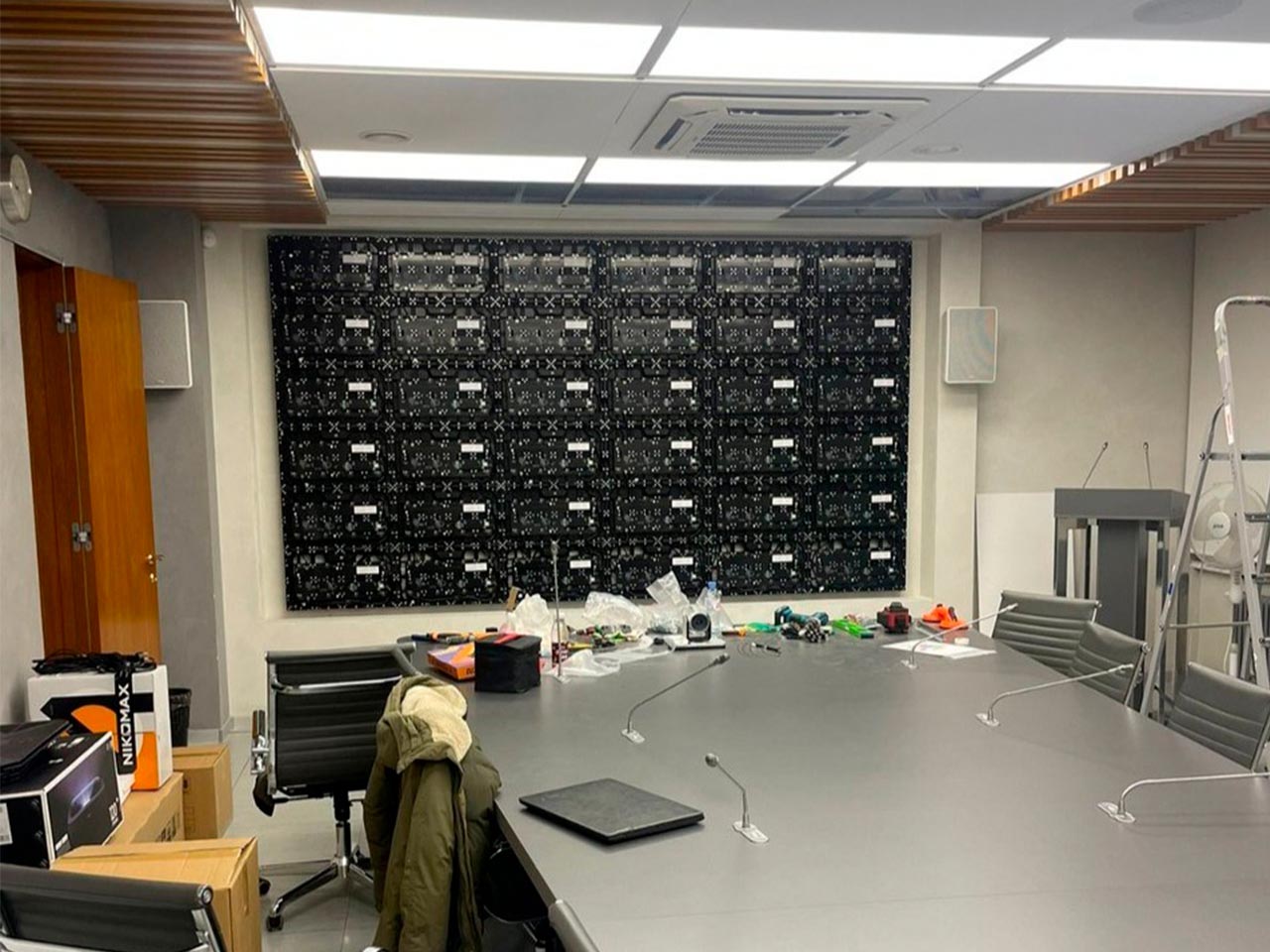 В рамках проекта специалисты ГК «КОМПЬЮТЕРЫ И СЕТИ» модернизировали систему отображения: вместо устаревших LCD‑панелей установлен светодиодный экран EliteBoard LD‑RA0937NC с высокими параметрами изображения, управляемый видеоконтроллером FORSITE WS‑0408F‑32651583 (4 x DP 4K, 8 x HDMI 2K) на базе отечественной ОС Astra Linux из Единого реестра российского ПО. Монтаж видеостены на базе светодиодного экрана и современного видеоконтроллера обеспечил:- повышение наглядности и эффективности коммуникаций за счёт крупноформатного, четкого отображения всей необходимой информации для всех участников совещаний одновременно, что ускоряет принятие решений;